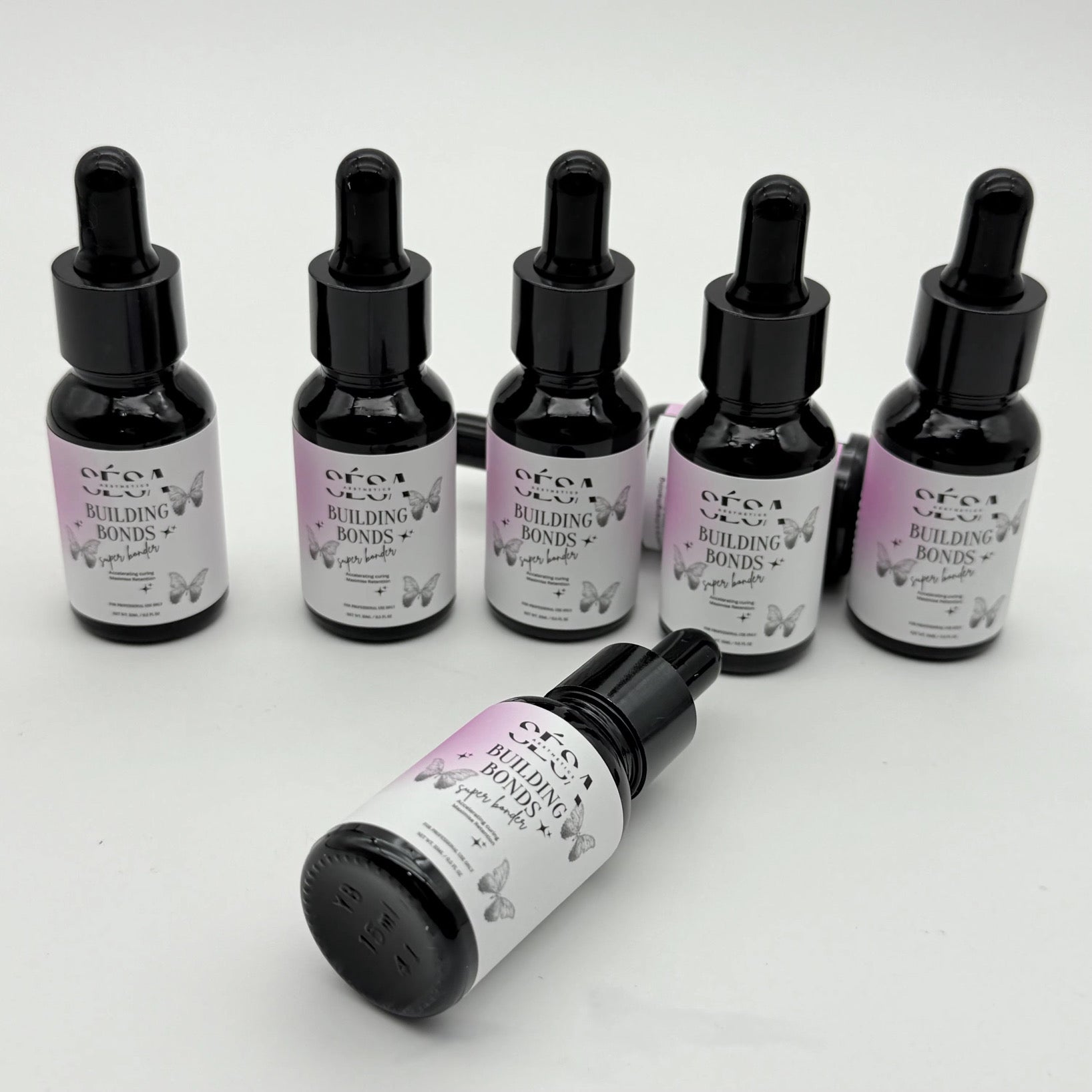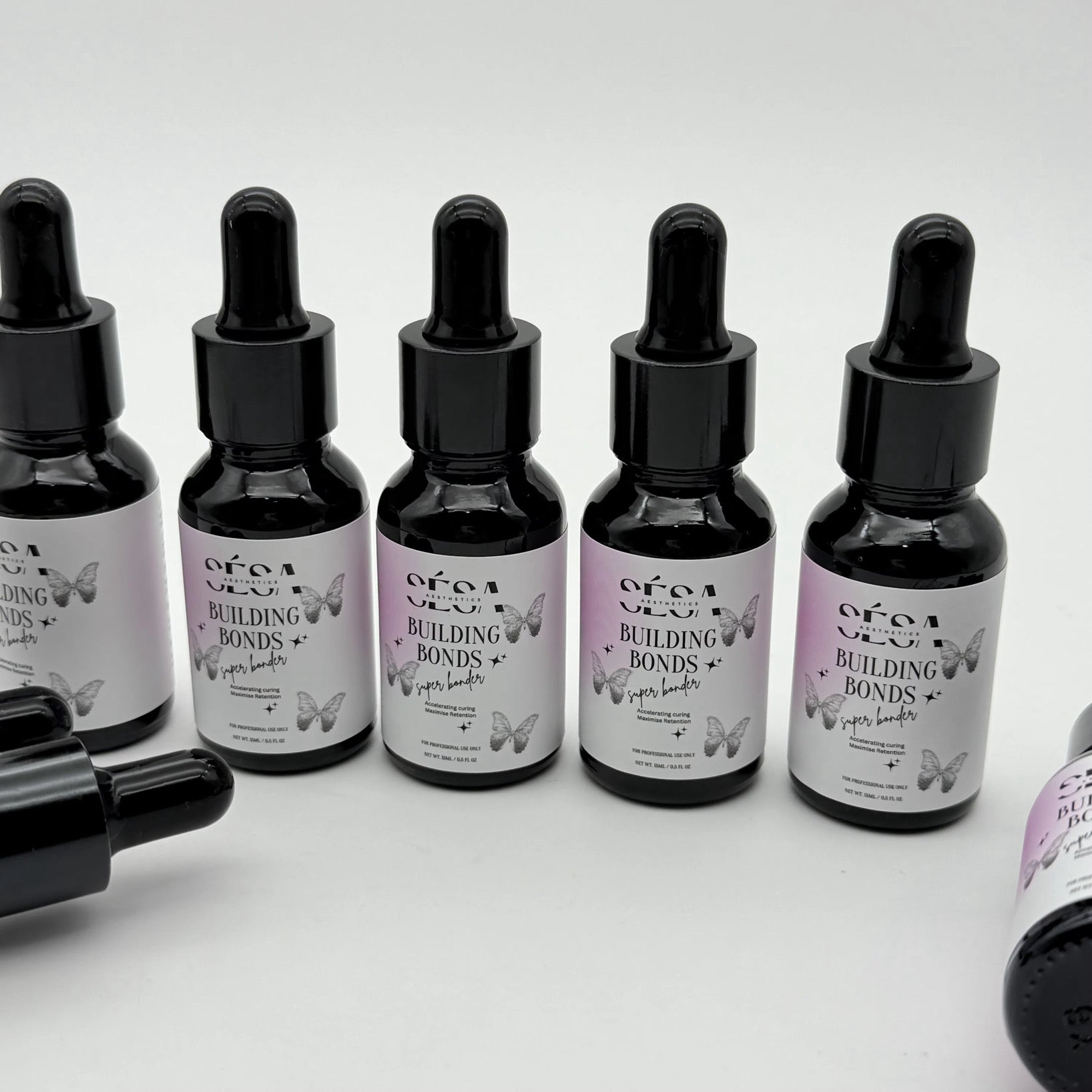 BUILDING BONDS super bonder is a lash extension sealant. Its purpose is to cure the glue post-service with the intention of creating a more comfortable, resilient, water and oil resistant lash wear for the client. Superbonder has instant curing properties which creates a stronger, more flexible lash hold which maximizes lash retention and reduces breakage.